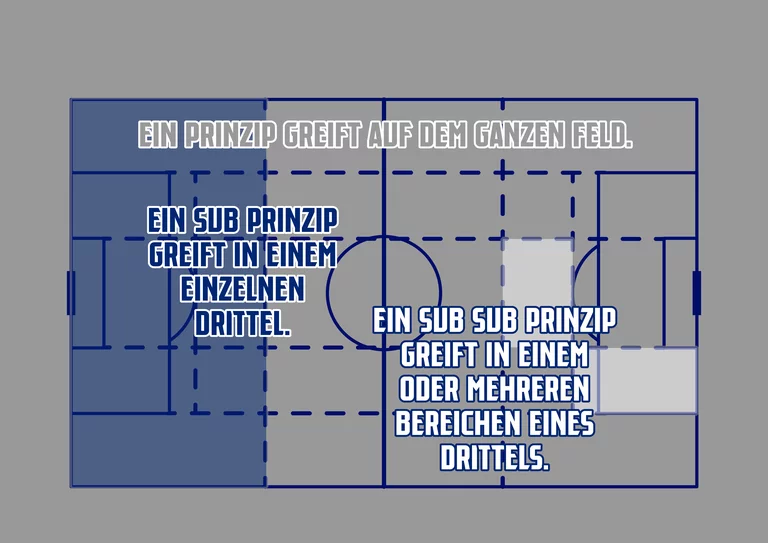 Die Vermittlung der Prinzipien, Sub-Prinzipien und Sub-Sub-Prinzipien ist der Kern der Trainingseinheiten und führt zur spielerischen Entwicklung der Spieler, sowie zu sportlichem Fortschritt.