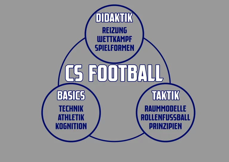 Die inhaltliche Idee von CS Football basiert auf dem Konzept des Raumfußballs. Es wird eine Loslösung von festen Positionen hin zu der Besetzung des Spielfeldes durch spezifische Spielerrollen angestrebt. Dadurch werden automatisch die taktisch relevanten Räume in den einzelnen Spielphasen berücksichtigt. Durch die Nutzung der Rollenmodelle werden die Spieler leichter mit den allgemeinen und positionsspezifischen Prinzipien vertraut gemacht.